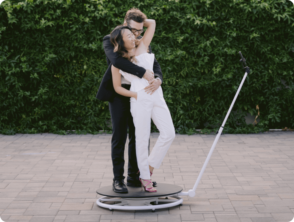 Photos and videos from our 360 booth are instant, timeless keepsakes. Capturing your wedding’s joy and beauty in a modern, unforgettable format, these mementos will be cherished by you and your guests for a long time. From laughter-filled group shots to romantic spins with your special someone, we capture every emotion beautifully. And the customization? It’s all about you. Make the booth a seamless part of your wedding decor by tailoring it to reflect your style — from elegant, romantic backdrops to fun, quirky props.