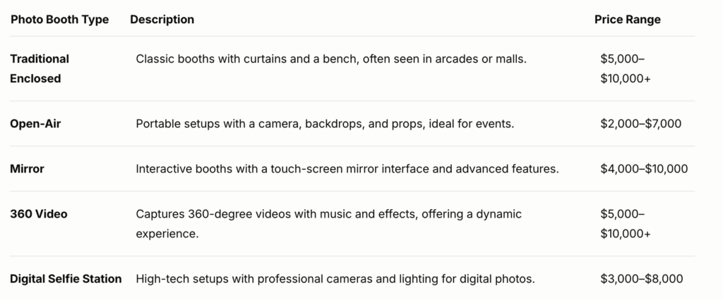 The market dynamics are particularly favorable right now for a photo booth rental business: