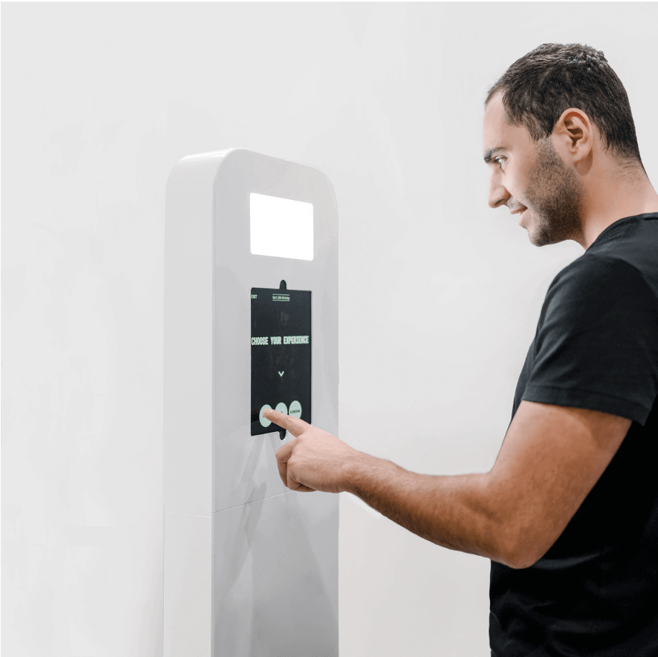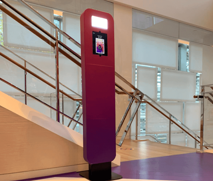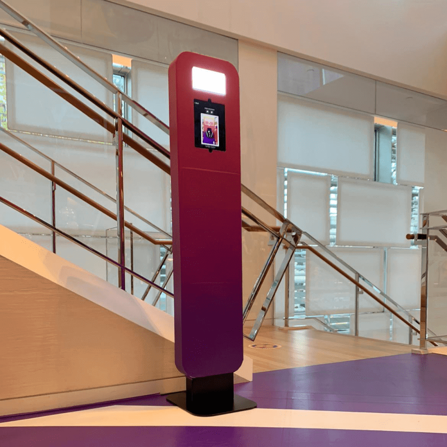 Our headshot photo booth captures your best angle in a snap. Step in front of the booth.